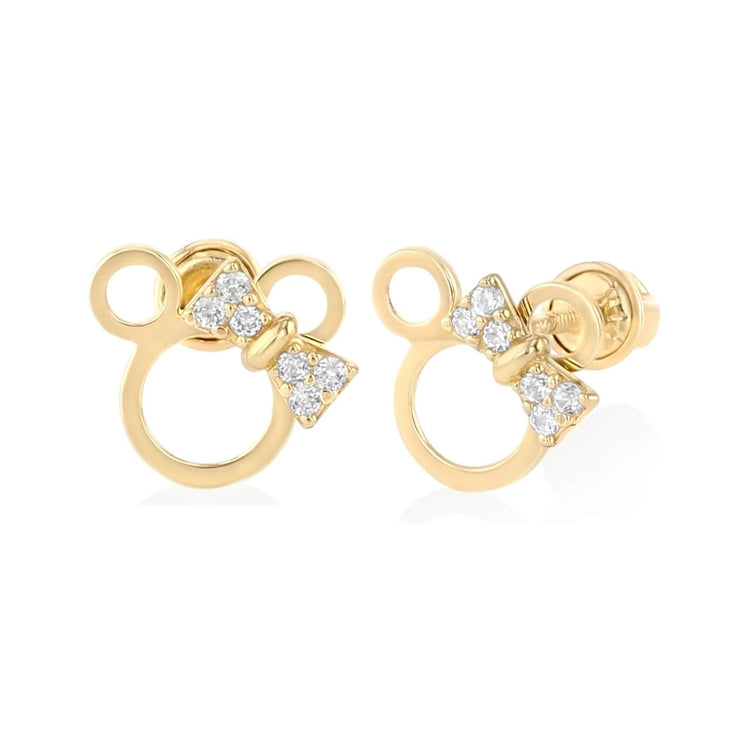 14K Gold CZ Cute Cat Kitten Stud Earrings