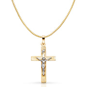 14K Gold Religious Crucifix Charm Pendant with 0.8mm Box Chain Necklace